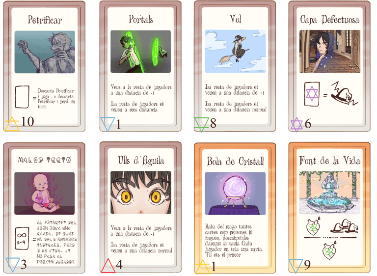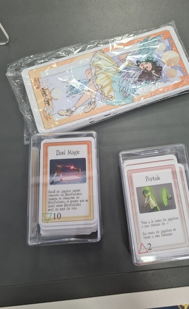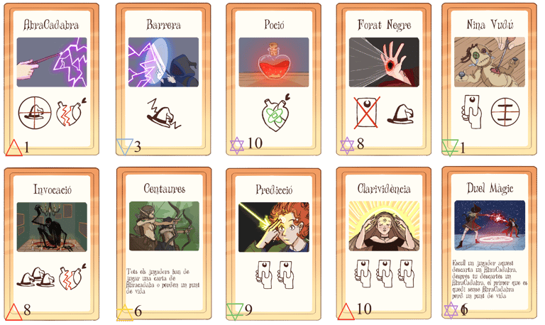 It's a card game about casting spells between players to win. It's divided into several roles: "Merli"[Merlin] with his helpers "Mags"[Wizards & Witches] against ''Warlocks'' and the enemy of all "Matabruixes"[Witch Killer].
