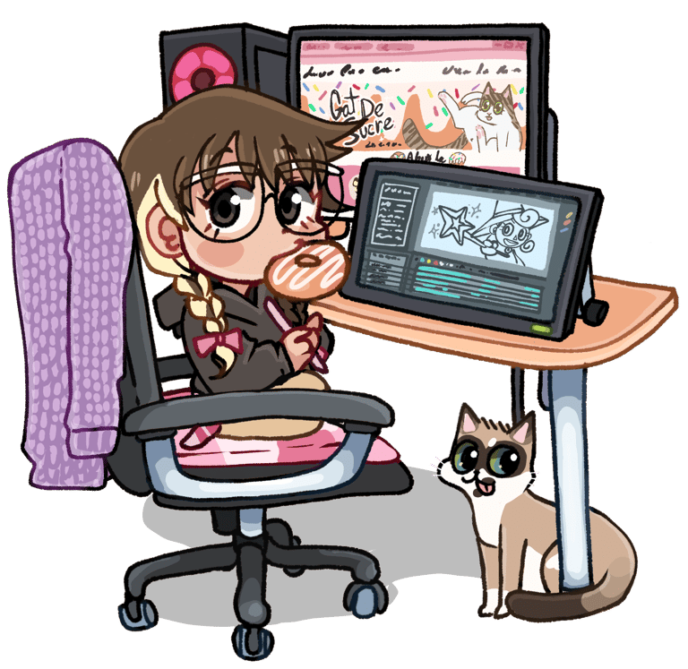 Hi! My name is Laura but you may also know me by my artist name 'GatDeSucre' which means 'SugarCat'. I'm a 2D Animator & Game Developer who can not wait to bring stories to life.